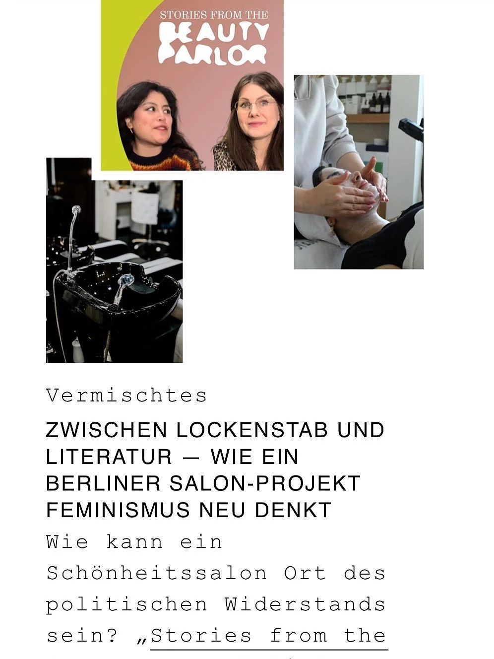 Sparked by a beauty parlor session during parental leave in 2023, Stories from the Beauty Parlor found its home in Berlin, but includes bright and diverse talent. Today, a dedicated transatlantic team is working to create innovative solutions in the face of ever-growing global feminist backlash.