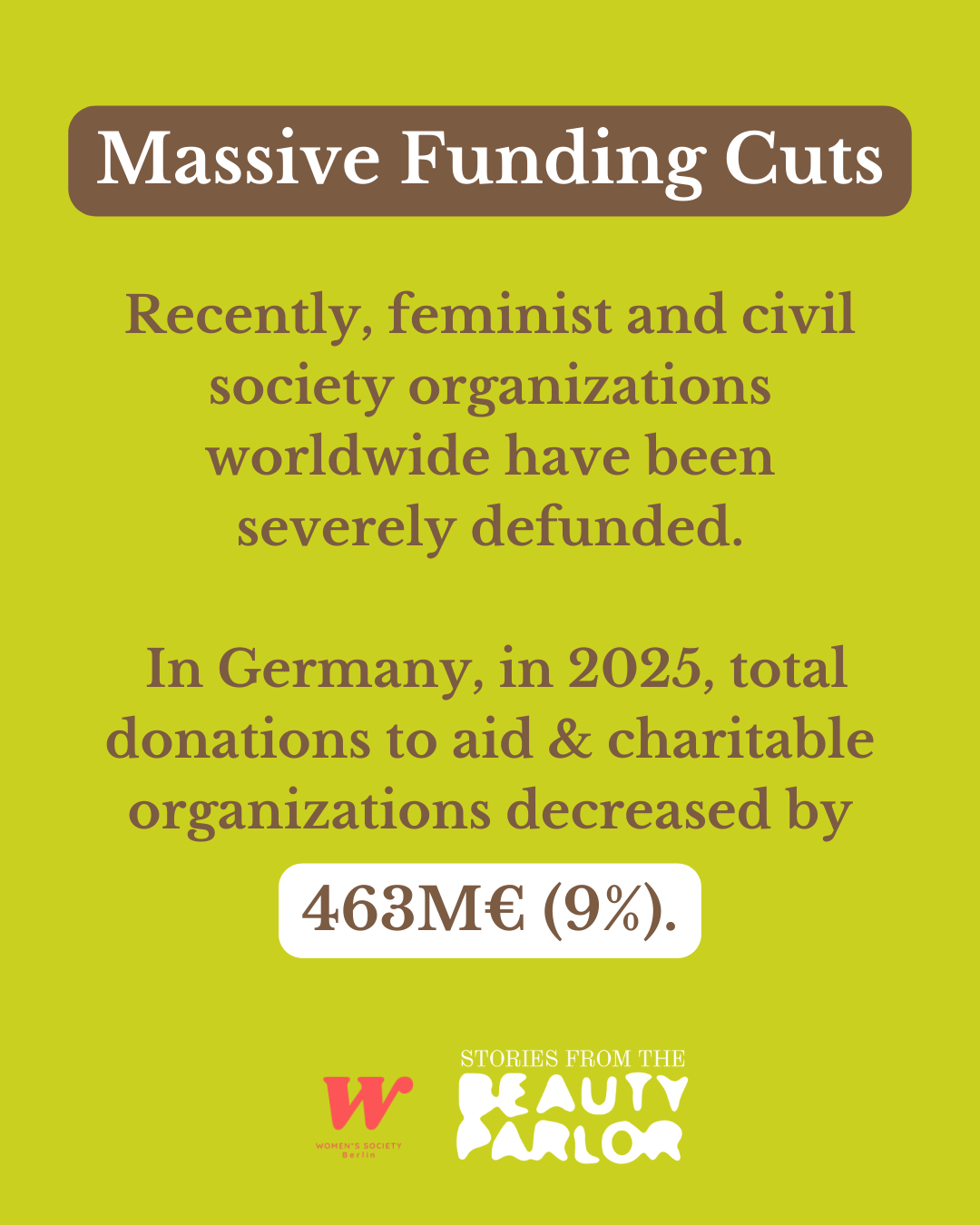 While women’s organizations are at the frontlines of resistance movement defending democracy and human rights, they are massively underfunded amid across-the-board funding cuts. In 2025, donations declined by 463M €, as recent figures from the German Donation Council show.
